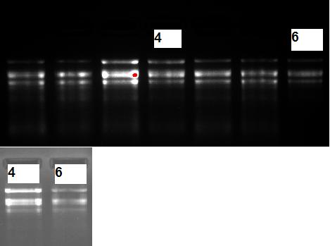跑电泳有点奇怪,普通1%琼脂糖电泳,220v 10分钟 顶上那条代应该是28s,但是为什么那么细,别人说可能是基因组,但是基因组应该是很粗的,不会这么单一,做PCR没有跑出基因组条带,不过18s比较浓,和28s不成比例,后来又跑了一次,发现貌似是和别的RNA粘在一起,另外,,看不见5s,听说水稻叶片RNA比较多带,这样正常吗? |