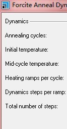 退火次数(这个应该能理解吧) 初始温度(这个应该也能理解) 中间温度(这个,举例吧,比如说你从200度到300度先升温,然后接着从300度到200度降温,这样算一个循环;这个300度就是中间温度,也相当于档次循环最高温度) 加热坡度还是啥的(举例吧还是:比如说从200到300属于加热环节,如果ramps是5,则等于是每隔(300-200)/5=20度跑一次动力学,即200,220,24。。。。到300后接着就是280,260。。。。) 每个ramp的时间步长:比如说200的时候1000ps,220度的时候1000ps。。。。 总的时间步长:ramps=5,每个ramp的时间步长是1000,则总的时间步长等于5x1000x2(因为退火包括heating 和cooling两个环节) 这样说不知道对不对,看看有没有高手有更清楚的解释方法~ 看楼主金币不少,意思意思呗~ |