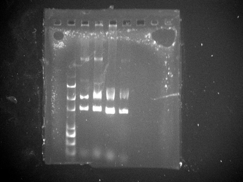 条带形状还可以 不明白为什么这么多带?3酶切? 看楼下怎么说