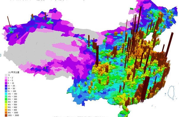 如题,我有县级行政单元的人口密度,分级显示后,想在按照人口密度的大小让图像立起来。