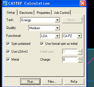 大家严厉批评并指正,希望能够在大家的帮助下获得正确的计算方法。谢谢 使用CASTEP计算FeS2,因含有过渡金属所以采用LDA+U计算。在文献中看到低自旋S=0所以自旋值采取的系统默认的。关于U值和实验数据相比(系统默认的是U=2.5)后选取的1.5. [ Last edited by 贺仪 on 2011-10-20 at 20:44 ] |