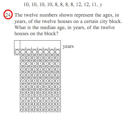 To find the Median, place the numbers you are given in value order and find the middle number. if there are an even amount of numbers ,we need to find the middle pair of numbers, and then find the value that would be half way between them. In this problem, no matter where the unknown Y would be placed, the middle pair of numbers would always be 10 and 10,corresponding to a median number of 10. so the answer is 10 years. [ Last edited by Shiningstar on 2011-9-28 at 17:22 ] |