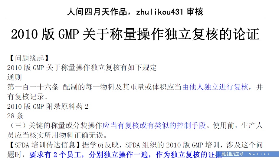 2010版GMP关于称量操作独立复核的论证(zhulikou431作品)
