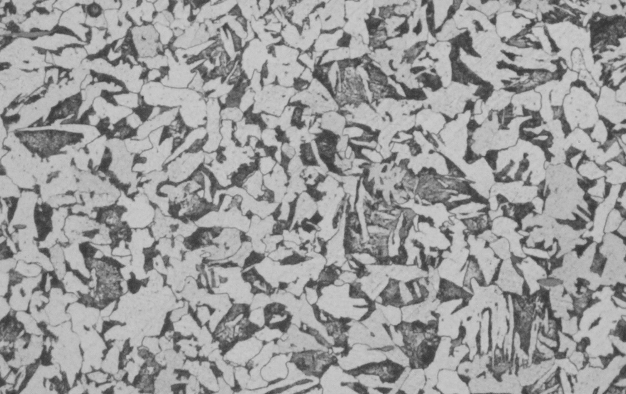 没有提供放大倍数和标尺的照片不规范,这些组织与2级魏氏体组织接近,白色近针状铁素体、少量块状铁素体,灰黑色区放大倍数不够高,应该是贝氏体也可能存在少量珠光体。