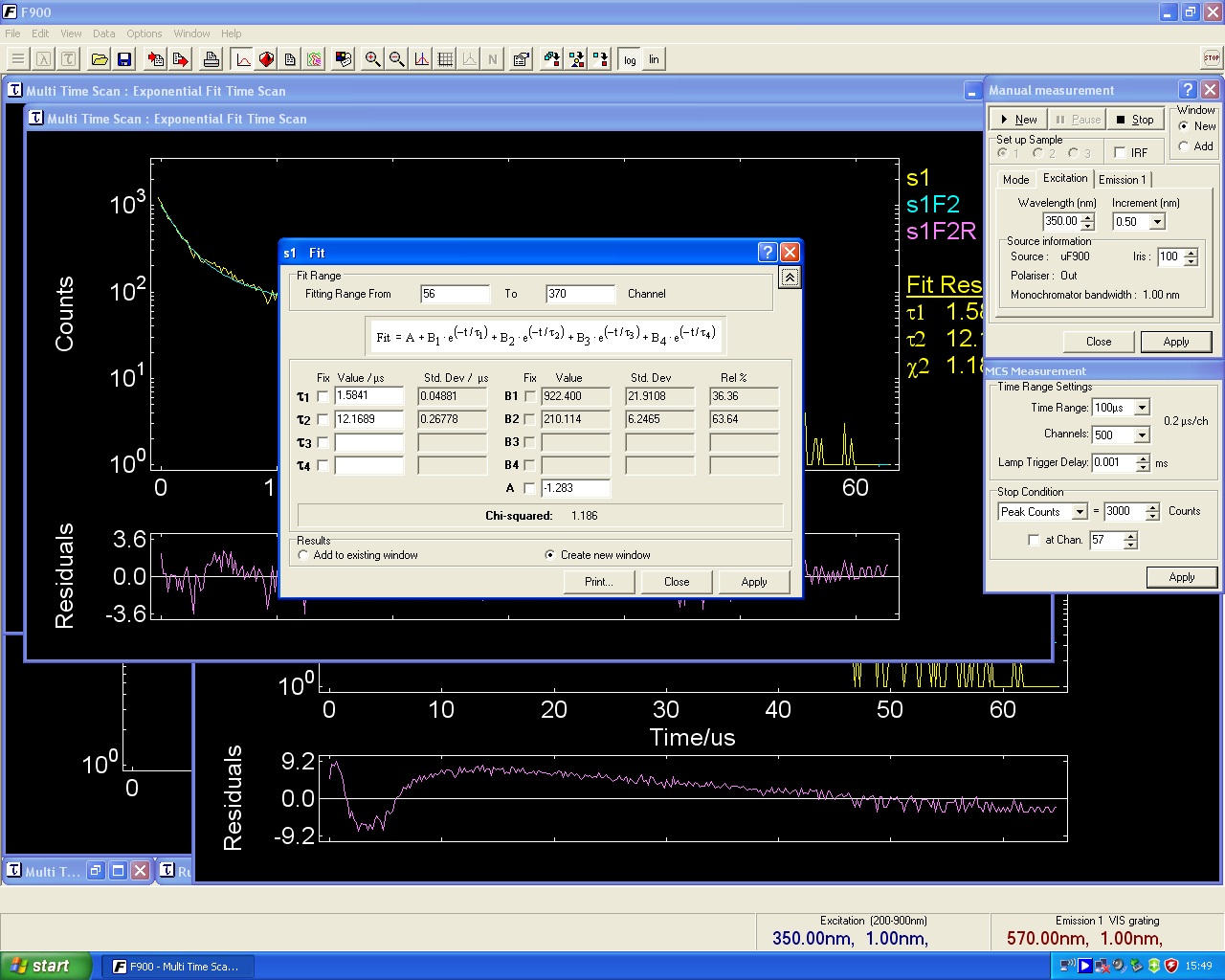 求荧光寿命TXT具体origin 拟合及数据处理的正确方法 求详细 每一步都明确写出 fit值方位 以及chi-squared接近于1 residuals 接近于0