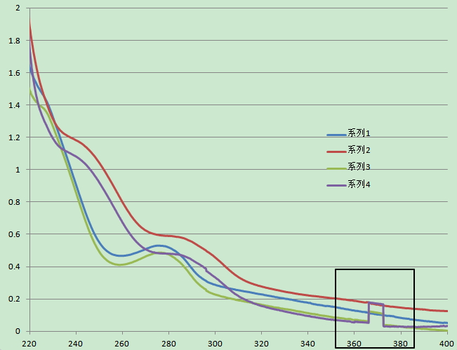 下面两个图的方框部分,吸光度值突然升高,一个甚至直接达到10。