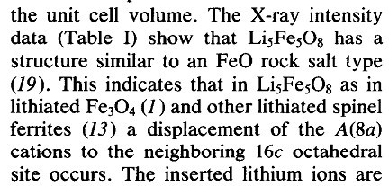 journal of solid state chemistry 64, 240-248 该篇文章中有精修过Li5Fe5O8结构,但文中只给出了其空间群和晶胞参数而已,希望哪位大侠能给小弟提供Li5Fe5O8的CIF 文件,或者有提供解决办法的也有奖励(若是提供数据库的就算了,我已经查多了,查不到该物质的cif文件),谢谢! Li5Fe5O8 G.P.:Fd3m NO.227朋友也可提供相同原子比例的结构式,且具有相同空间群哦。 [ Last edited by furusheng on 2011-9-29 at 19:24 ] |