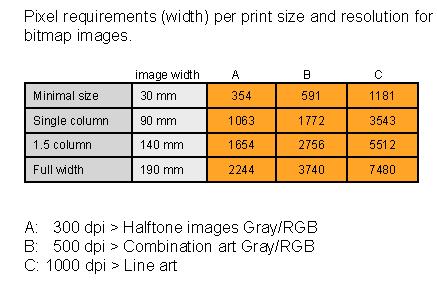 elsevier的图片格式要求有个表格上是关于分辨率和图片大小要求,但我看不懂,请高手指点下:橘红色的表格数据是什么意思,A,B,C分别代表的是什么图?(我查了词典还是不懂是指什么图,请详细说明下) 假如我的图是六张曲线图(3行,2列)所组成的,总宽度为页宽,我的分辨率该设为多少? |