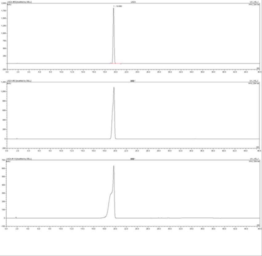 在做一个化合物时,用乙腈和0.1%的三氟醋酸走的梯度,色谱柱是全新的,才开始第一针峰型很好,走第二针开始就有变宽前延的趋势,用到第三次这个条件时,峰已经相当难看了,就像有两个峰一样,其实从开始做这个试验也总共走了不超过20针,不知道是什么原因,望解答,谢谢! |