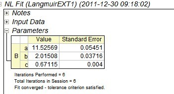 | 需要用三参数Redlich-Peterson。我的origin8.0搞了一天都没弄好,希望有人出手救救我!愿意的举手啊!多谢啦! |