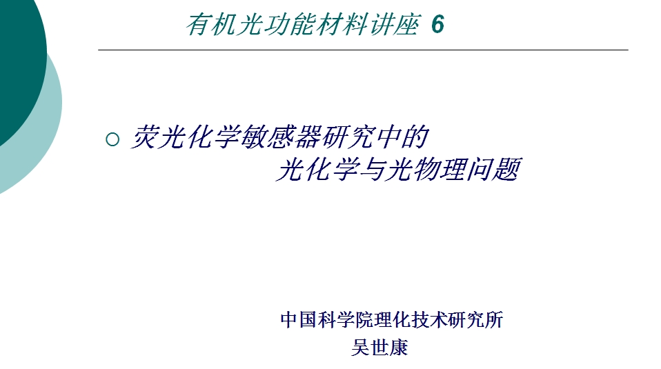荧光化学敏感器研究中的问题;中国科学院吴世康学术报告。这是他在西北大学生命科学科学学院做的一个报告,包括了: 荧光化学敏感器发展的原因和现状 敏感器(Sensor)的设计与合成 敏感器化学研究中要求的基础理论知识 分子识别研究的新进展 [ Last edited by zz2317754 on 2011-10-2 at 19:34 ] |