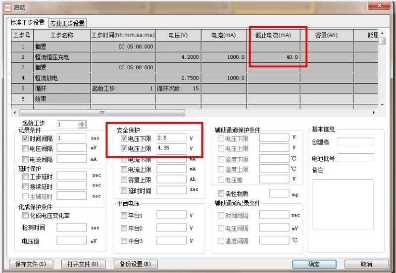请问下我们想用现有的蓝电测试系统进行恒容测试,即以相同的电流进行充放电,但截至条件是固定的容量(但同时设置一定的电压上下限,以防止过充或者过放),应该如何编写程序? 我们已经试过蓝电系统中,用两个终止条件,即容量>=固定值,电压>=固定值,但是测试系统中这两个条件默认是并列关系,而为了达到我们所需的恒容,必须是或者关系,请问各位前辈我具体应该怎么设置??? ![]() ![]() ![]() ![]() ![]() ![]() |