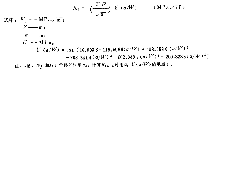 目前查到有两种方法计算K值,一种是根据开口位移尺寸,具体公式和参数含义如下: