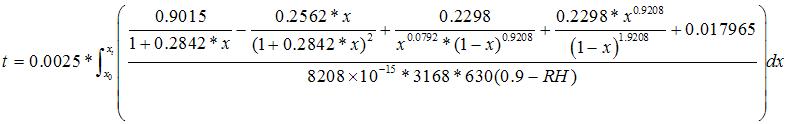 计算要求:公式如图 计算上式: t 以1为步长,计算到300 每个对应的t求出相对应的x,其中x0为0.1581 根据每个x值求出 A=1.515*0.2842*x/(1+0.2842*x) B=(0.02105*x^0.9208)/(1-x)^0.9208 要求也可见附件 |
