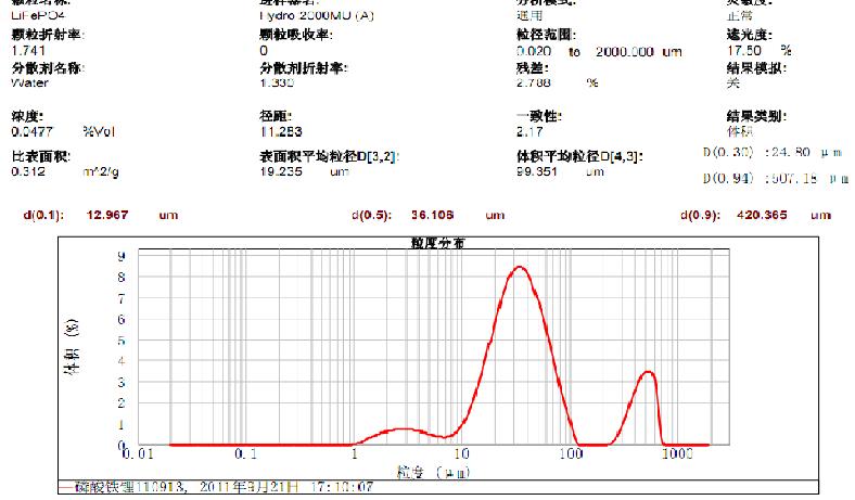 首先从你的粒径上看,粒径严重超标,市场上的材料粒度D50越为几个微米,D90不超20微米。