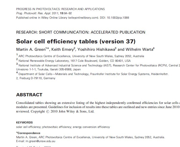 最新Solar cell efficiency tables (version 37) 小弟第一上传,希望大家支持! [ Last edited by liuerxian on 2011-10-10 at 10:22 ] |