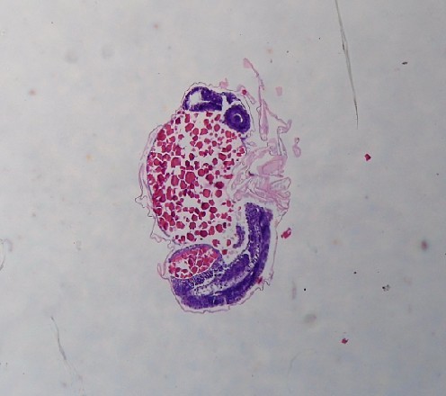 做的鱼胚胎的石蜡切片,可能由于内部的卵黄物质比较特殊,包埋后很脆,切片染色后结果不理想,内部红色卵黄物质容易散落。有什么办法能使内容物不太容易跑出来呢?整个过程我没有弄破卵膜,各级酒精脱水都是1小时,用水杨酸甲酯透明一夜,最后透蜡3小时,HE染色。 以下为拍摄的照片,一张是不太好的,一张还可以。请高手们支支招~谢谢。 较好的 较差的 |