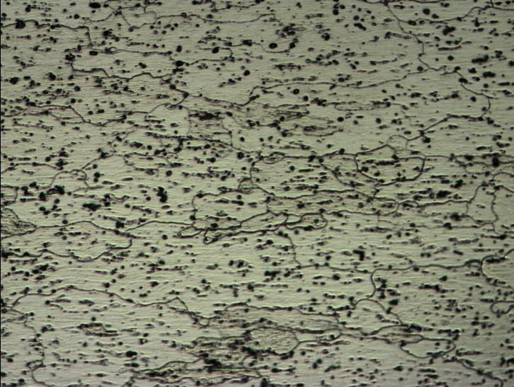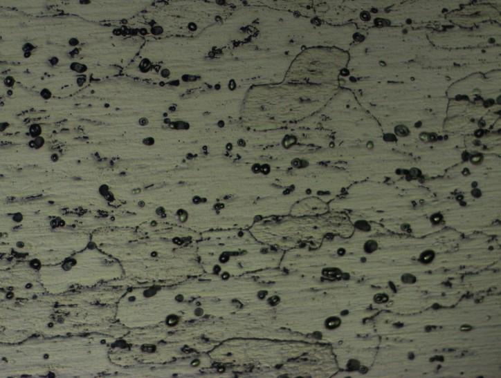 我也一直不确定这黑点是不是第二相,这在腐蚀之前是没有的,腐蚀后在高倍镜下观察像浮凸的感觉,图片就会模糊。32楼的照片基本确定这是第二相了。但是我的图片是退火前的试样组织,把材料退火后就很难再做到那样的效果了,请问你的材料是什么加工与热处理状态啊?求指教~~