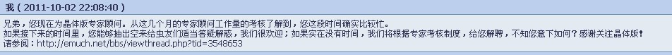 帝夫(金币+50): 根据规定,暂且解除您专家顾问职务,优先忙于现实中的事物! 2011-10-11 12:57:27