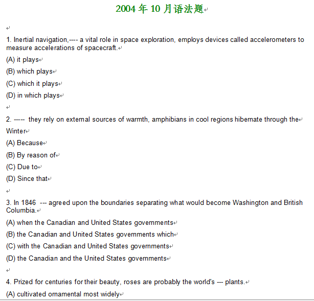 【习题资源】托福语法试题大全