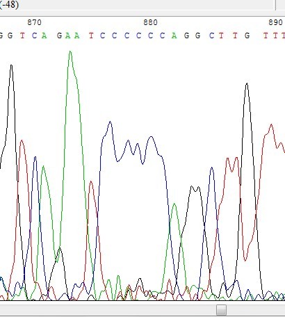 峰图不准确的位置已经在880bp以后了,一般800bp后的峰图就不可信了。你的片段总共1700bp,建议你反向测序就可以得到全长序列。