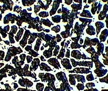 生铁,[C]=3.6%,请问能侵蚀出和钢一样晶粒来吗?哪位虫友做过啊,生铁侵蚀看晶粒的好像不多。我用4%硝酸酒精侵了30s,结构如下,大家指教一下。
