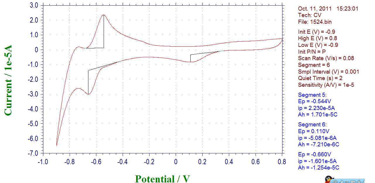 小弟最近在PB中扫了Pt工作电极的CV图 PB是25 mM,pH 7.2 参比是Ag/AgCl 对电极是铂丝 由于之前没有扫过,所以请教标准的CV图! CV图 [ Last edited by 冰释冷枫 on 2011-10-11 at 15:53 ] |