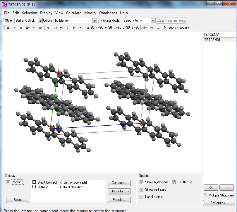 比如以并四苯为例: 它的‘monomer’ 是这样一个形式: 用mercury的calculate》 packing之后就成了: 那么并四苯应该是某个空间群标准化后得到的P-1空间群。 这里求问:什么空间群标准化后能够得到P-1空间群呢?, 例子的这个并四苯会是哪个空间群得来的呢? 晶体学的菜鸟诚挚求教,谢谢您的解答。 |