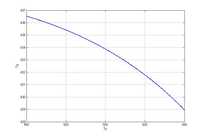 你好,以下是我的程序: clear clc %输入平台系统参数 display('输入平台系统参数'); d=input('太阳光吸收涂层宽度d(m):'); D=input('玻璃管的直径D(m):'); D_tro=input('反射镜宽度(m):'); L=input('平台系统长度(m):'); E_p=input('太阳光选择吸收涂层的辐射率:'); E_g=input('玻璃的辐射率:'); E_tro=input('反射镜的辐射率:'); E_rear=input('冷却管背部的辐射率:'); a_rear=input('冷却管背部的吸收率:'); %输入周围环境参数 display('输入周围环境参数') v=input('周围环境风速(m/s):'); Ta=input('环境空气温度Ta(K):'); Tc=input('冷却管温度Tc(K):'); %常数 %斯蒂芬-波尔兹曼常数 sigma=5.667e-8; % W/(m2.K4) %定义玻璃管温度Tg为变量 syms Tg Tp %%%太阳能热电系统热损耗系数如下%%% %(1)太阳光选择吸收涂层与玻璃管下部之间辐射: hr_sg=sigma*(Tp^2+Tg^2)*(Tp+Tg)/(1/E_p+1/E_g-1); Ap=d*L; R1=1/(hr_sg*Ap); %(2)玻璃管上部与冷却管之间的辐射: hr_rg=sigma*(Tc^2+Tg^2)*(Tc+Tg)/(E_rear+E_g-1); R2=1/(hr_rg*Ap); %(3)玻璃管下部与反射镜之间辐射: hr_gtro=sigma*(Tg^2+Ta^2)*(Tg+Ta)/(E_g+E_tro-1); Ag=pi*D*L; R3=1/(hr_gtro*0.5*Ag); %(4)玻璃管下部与反射镜之间空气对流: hw=5.7+3.8*v % W/(m2.K) R4=1/(hw*0.5*Ag); %(5)反射镜与周围环境空气对流: %略 %(6)玻璃管上部对天空的辐射: hr_gsky=sigma*(Tg^2+Ta^2)*(Tg+Ta)*E_g; R6=1/(hr_gsky*0.5*Ag); %(7)反射镜对天空的辐射: %略 %(8)玻璃管上部与周围环境空气对流: R8=1/(hw*0.5*Ag); %求解Tg f=(Tp-Tg)/R1+(Tc-Tg)/R2-(Tg-Ta)*(1/R3+1/R4+1/R6+1/R8); equation = [char(f) ' =0 ']; A=solve(equation, 'Tg') Tp=450:1:650; for i=1:length(Tp) Tg1(i) = subs(A(1), Tp(i)); Tg2(i) = subs(A(2), Tp(i)); Tg3(i) = subs(A(3), Tp(i)); Tg4(i) = subs(A(4), Tp(i)); end for j=1:length(Tg) i=1:4 if isreal(Tg(i)(j)) && Tg(i)(j)>400 %判断y(i)是否是实数,并且是否大于400 fprintf(1, '%.9f\n', Tg(i)(j)); end end plot(Tp, Tg) |