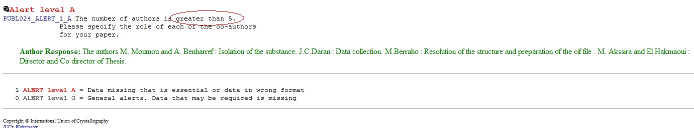 刚才在看ACTA E上的结构报道,发现一文章checkcif 时因作者超过5个被定为A错