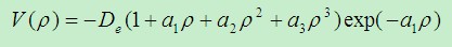离解能De可以通过势能曲线的拟合得到. 我用的是Murrell-Sorbie function,具体形式为: