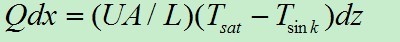 方程如图片所示,Q为热量,x为干度,z为轴向长度,(ua/l)为单位长度换热量.