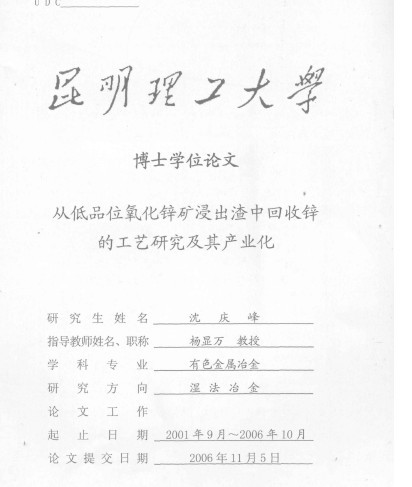 从低品位氧化锌矿浸出渣中回收锌的工艺研究及其产业化