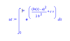 exp(1/2*(In(x)-a)^2/b^2+c*x), 积分限:x = 0 .. infinity