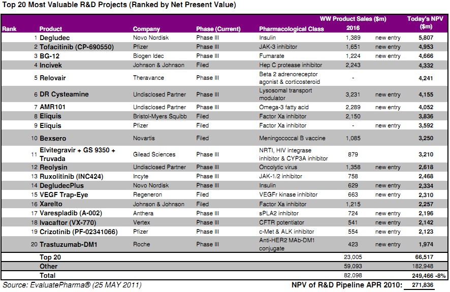 世界20大最有价值的在研新药(按净现值排序) 已有8人参与