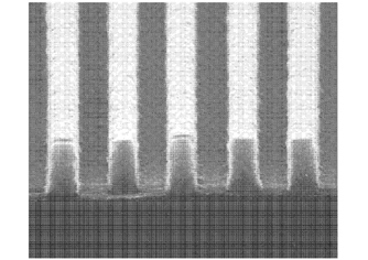 如下图,为光刻胶线条的截面SEM图,但是由于我做的光刻胶线条尺寸很小,很难用手工的方法在硅片上的光刻胶线条上准确地切开截面,即使切开,其边缘也是粗糙难看,很难达到下图的效果,请问大家是怎么做的?不甚感激 [ Last edited by 学海无涯t on 2011-10-14 at 10:06 ] |
