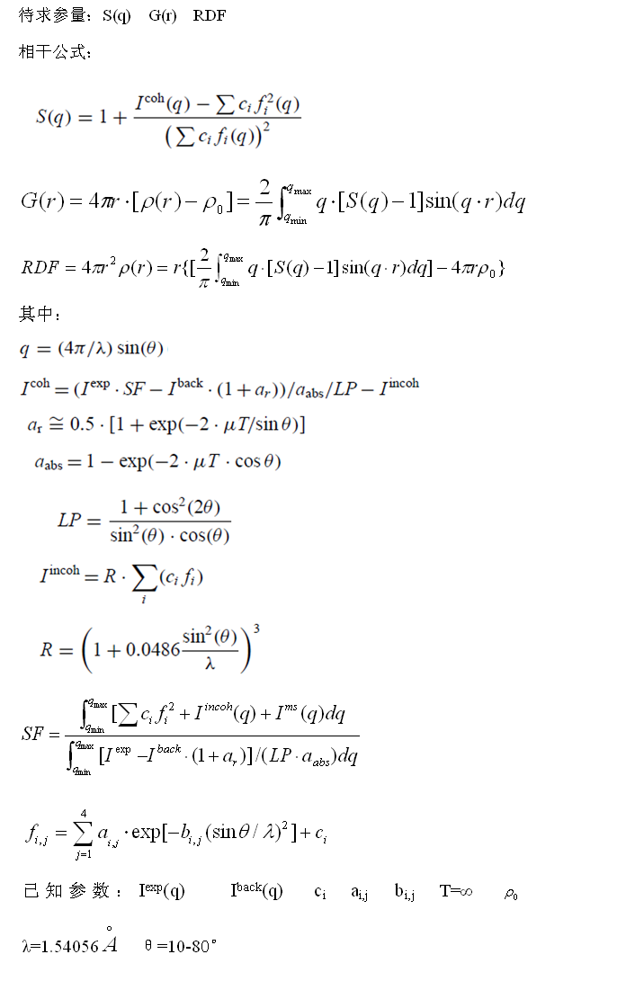 我想用XRD数据来计算分析非晶的原子径向结构,现在情况是,使用的rad程序几个参数找不到,哪位大侠能帮忙:或是懂rad程序的,我继续用rad;或是有别的软件可供使用;或是能编程的,帮忙编写新程序(有公式但我不懂编程)。