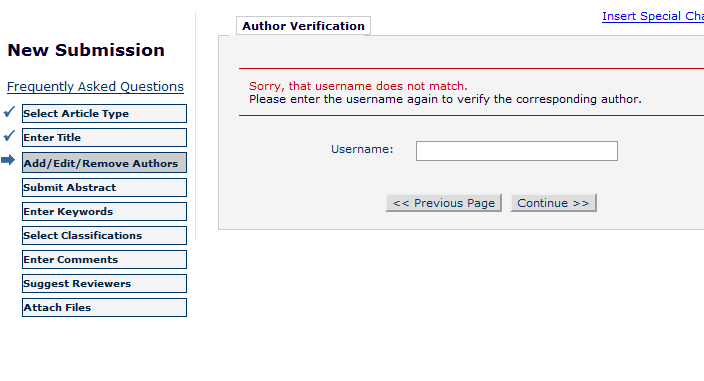 投欧陶文章 第一作者是自己 第二作者是导师 但是通讯作者想写导师的 因为自己邮箱不稳定。。。 在submission步骤里第一作者自己 第二作者写老师时 同时勾选他为通讯作者 结果弹出个网页上面已经有老师的信息,信息后面有个verify的链接,我就点了 结果又弹出了网页说填username, 我填我的用户名字,系统说not match 我想问这里到底是填谁的用户名啊? 就是这个图片 |