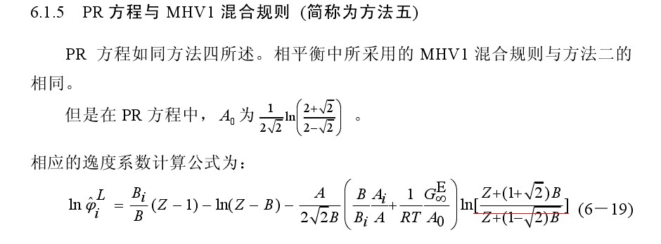 各位大侠,大家有推导过用状态方程和混合规则结合求取逸度系数的公式吗?本人对化学相平衡方面研究不是很多,数学也不是很好,求高手能给我发一个比较详细的推导过程或是有详细推导过程的资料吗?以PR方程和MHV1混合规则为例吧,小弟谢过大家了,好人交好运! |