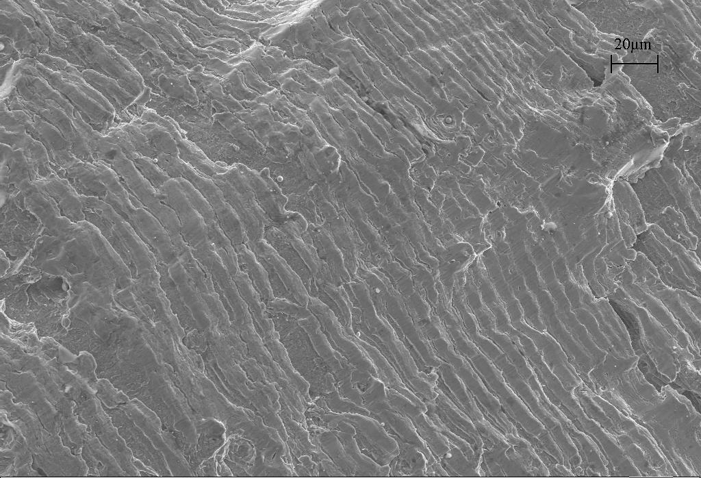 只从形貌上分析,像是磨损划伤。你要想判断是不是疲劳,要综合材料、受力分析和断口宏观来分析啊。单单看微观形貌什么不了什么。