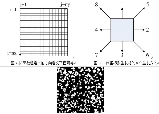 随机生长的步骤如下:1) 建立材料生长的初始网格,并设定所有网格材料皆为主相; 2) 定义生长相的生长核分布概率数,Cd,其大小不大于此生长相的体积分数。对系统网格的每个单元采用在(0,1)内均匀分布的随机函数赋随机数,其值若小于Cd,则认为此单元为生长相的一个生长核。其次,对每一个生长核,使其从各个方向上向其周围临近网格单元扩张,生长时,每一个方向上需设定一个方向增长概率数,Di,下标i代表方向。每一个生长核,其周围各个单元均会被赋值一个随机数,其值若不大于该方向上的方向增长概率数,则此单元同样成为一个新的生长相。第三,重复步骤二直至此生长相的体积分数到达其给定值。 这样的生长规则能实现吗? |