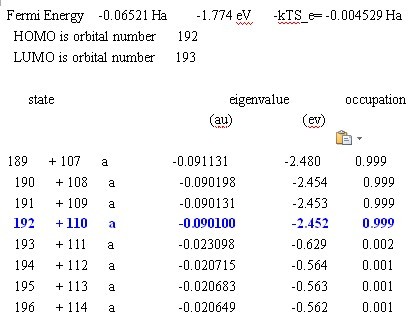 我用的是MS Dmol3模块算的,在outmol中给出了轨道占据,请问怎样确定HOMO态上的电子数?(或者是不能从这个图中看出来)请高手帮忙指点一下