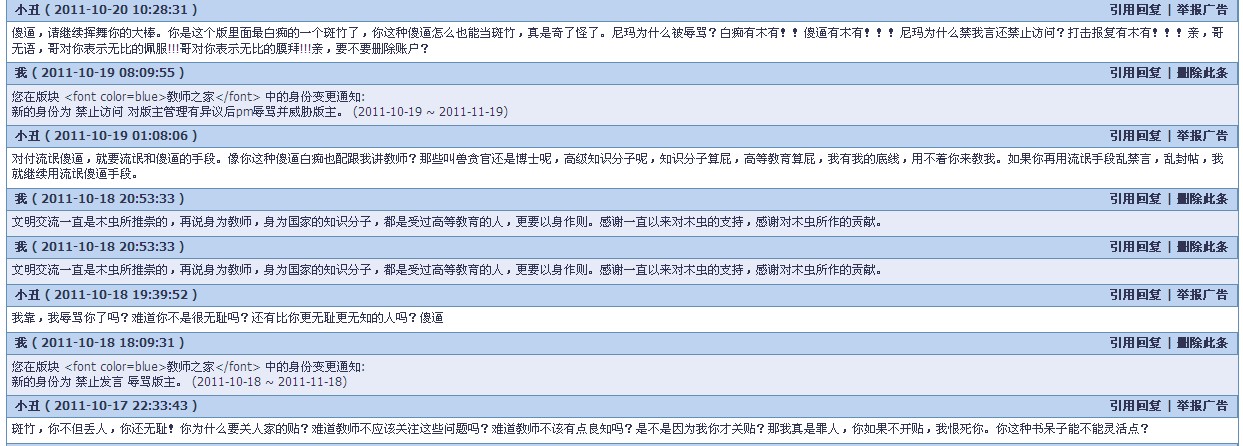 对ID小丑 在教师之家版永久禁言的处罚备案