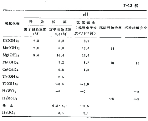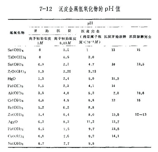 想找一个有关各金属离子沉淀的pH表,具体到每种金属离子在pH=?时开始沉淀,在pH=?时沉淀完全。其中的影响因素有哪些?希望有知道的高手给指点下~~