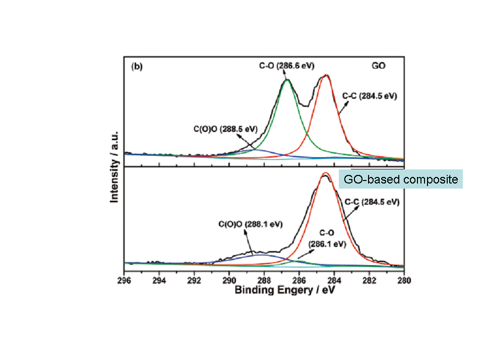 求助石墨烯基复合材料的XPS拟合问题。由于自己不会做XPS,希望高手帮助把这个数据进行拟合直接做出图形来。数据位置和我所提供图形的位置大致相同,在284,286,288ev左右的位置。如果能够做在word里面详细讲解过程,另外增加50金币。由于我是初次接触这个东西,希望能够尽可能详细。谢谢大家!!!!! XPS OF GRAPHENE OXIDE AND COMPOSITE |