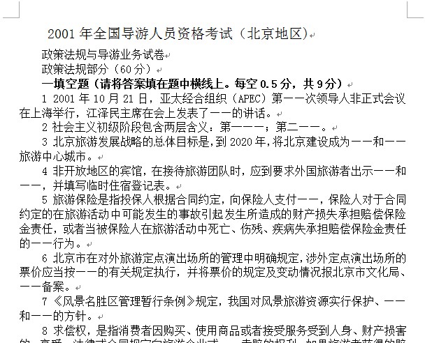 【真题资源】江苏:导游人员资格考试旅游英语试题