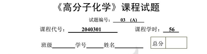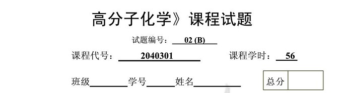 淘砖 | 淘贴 | 高分子化学试卷 |