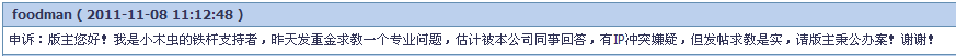 马甲一对儿,和上面的情况一样。发帖者是同一个人,被奖励者也是同一个人。典型的本人求助,本人回帖型。 http://muchong.com/bbs/viewthread.php?tid=3740840&page=1#pid2988014 [ Last edited by YUE-jf on 2011-11-7 at 17:14 ] |