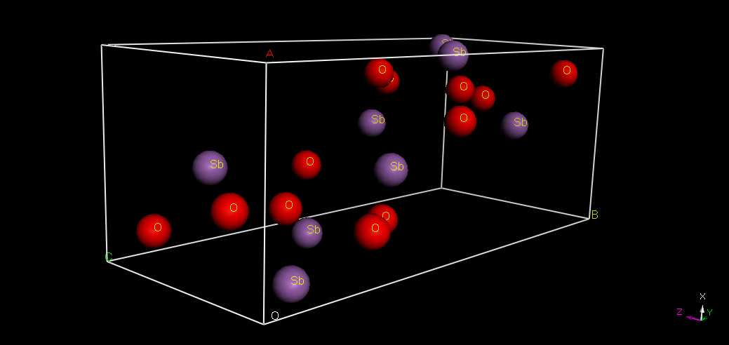 4.911 12.464 5.412 90 90 90 Pccn atom x y z B(1,1) B(2,2) B(3,3) B(1,2) B(1,3) B(2,3) Sb .04149 .12745 .17845 .01221 .00174 .00620 .00097 .00074 .00051 O1 .25 .25 .0229 .0250 .0015 .0040 -.0005 0 0 O2 .1520 .0591 -.1446 .0121 .0017 .0073 -.0017 -.0042 .0010 11.1519 11.1519 11.1519 90 90 90 Fd-3m atom x y z B(1,1) B(2,2) B(3,3) B(1,2) B(1,3) B(2,3) Sb .885271 .885271 .885271 .001576 .001576 .001576 -.000206 -.000206 -.000206 O .18625 0 0 .00201 .00203 .00203 0 0 .00054 |
