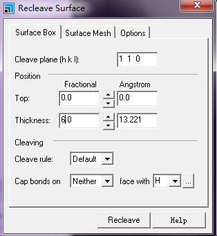 我想建立TiO2 金红石 110面,cleave surface 里的top值应该设置为多少呢?